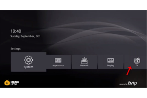 Step 1: After run the TVIP box and set the primary setting like language and time, Start from the main menu and go down to see the “Setting” and click on “TV” as depicted in the below picture.