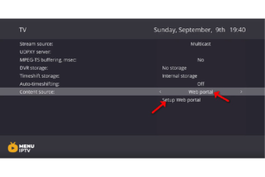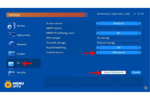 Step 2: Now on the right menu select the “TV” icon and then on the right side change the Content source to “Web portal” and click on “Setup Web portal“