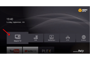 Step 4: After restarting the box in the main menu click on “Watch TV“, you must wait for the portal to load your playlist. This might take a few minutes.