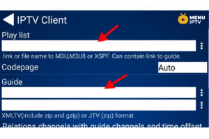Step 3: Now you must enter your M3U URL in the “Playlist” section and insert your EPG URL in the “Codepage” section.
