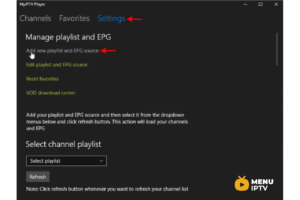 Step 2: Go to the “Settings” and select “Add new playlist and EPG source” and proceed to the next step.