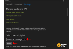 Step 4: Now head back to the settings section again and on the Select channel playlist section and select the playlist you just added and click on “Refresh“.
