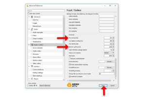 If the file you are trying to play is located on a network share (Dynamic M3U url), you can change the caching value for “Network Caching (ms)”.